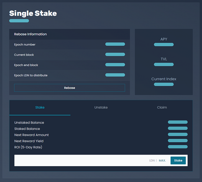 Enter the amount of LDN that you would like to stake in the input field. If you would like to stake all your LDN, press the “MAX” button and the input field will be populated with your total available LDN balance.